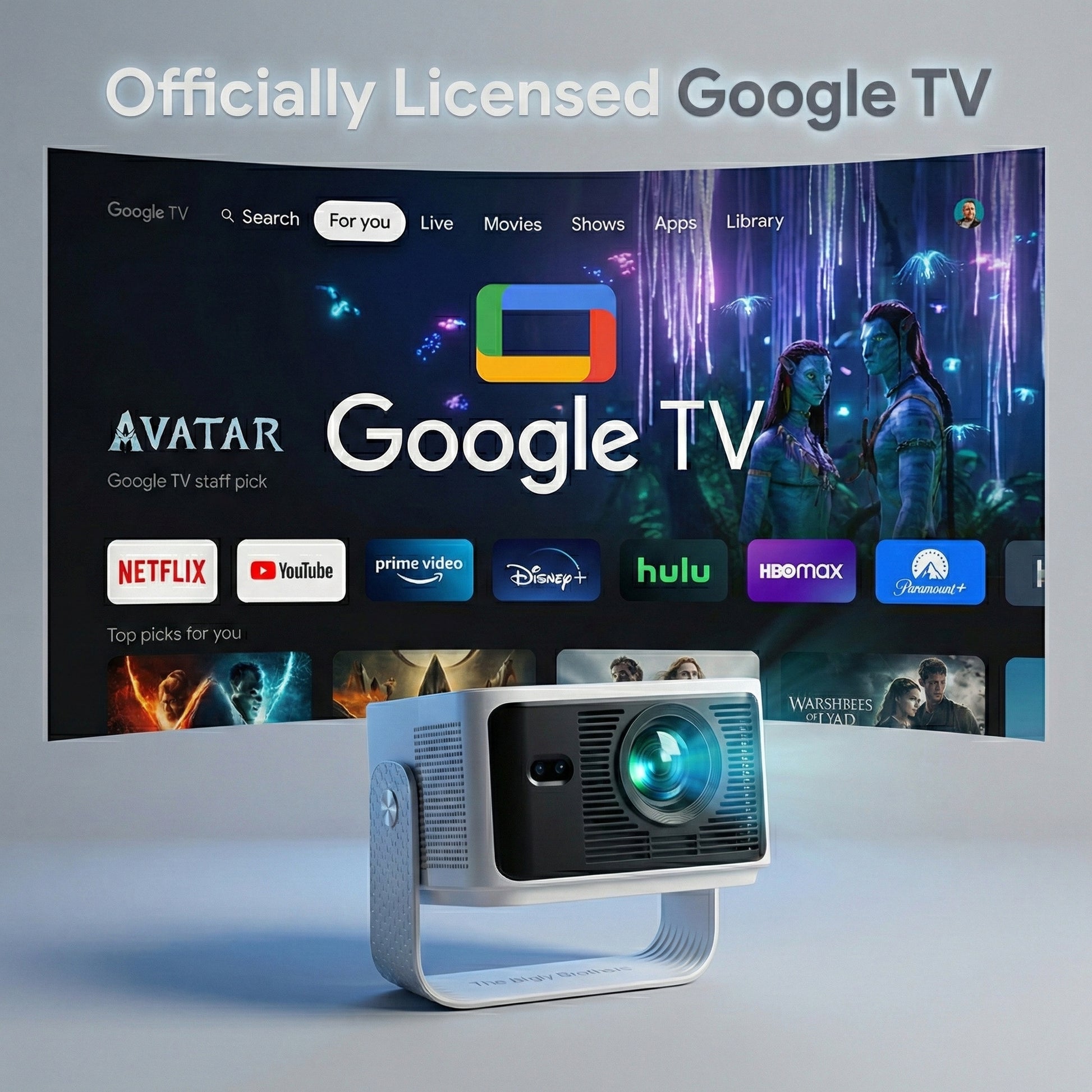 The Bigly Brothers 4K Smart Projector with WiFi & Bluetooth, Native HD Portable Home Theater Projector, Auto Keystone, Built-in Speakers, Compatible with iPhone, Android, TV Stick, Laptop