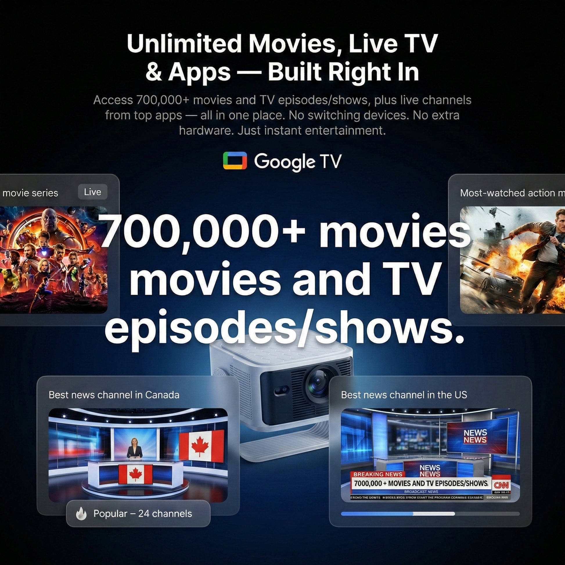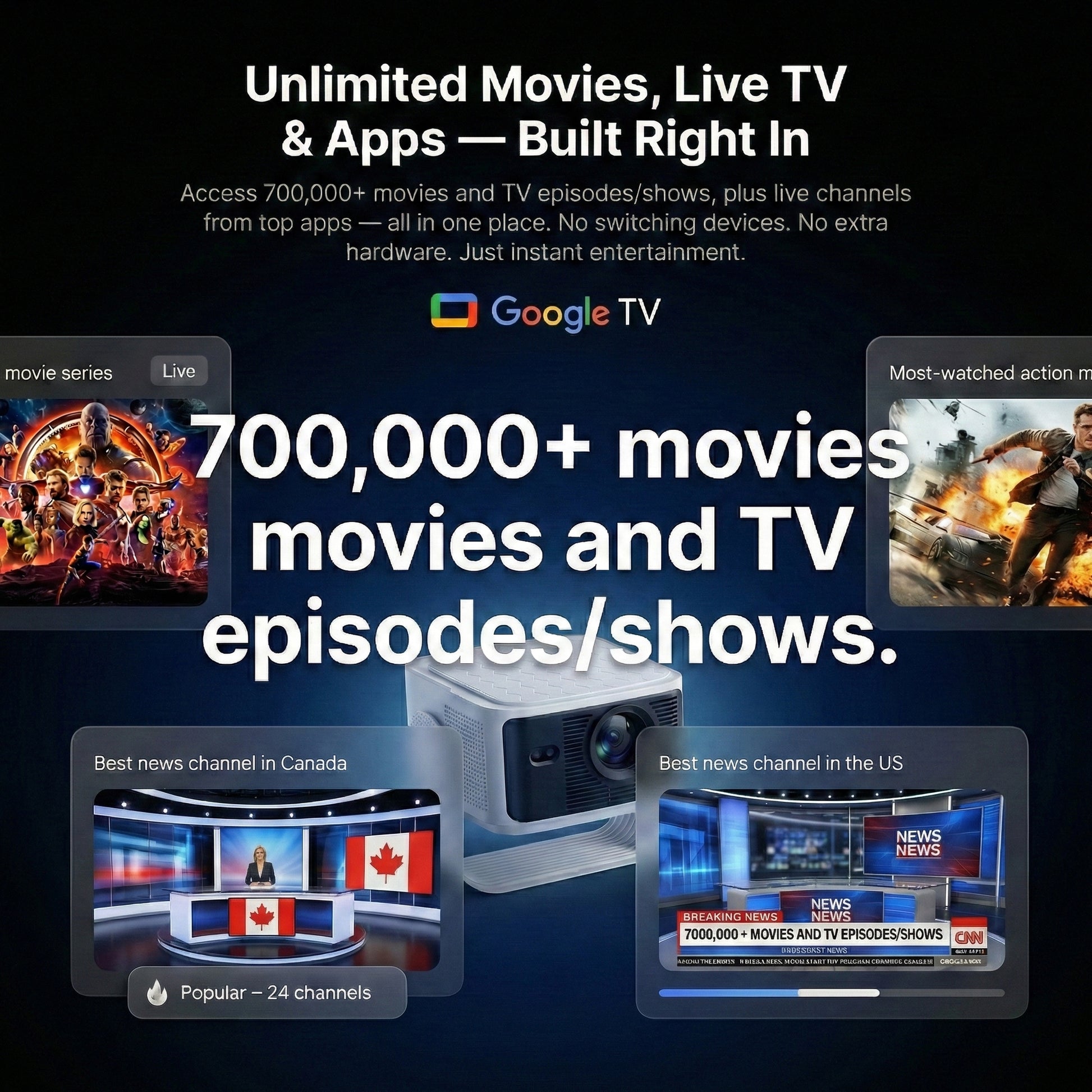 Transform any space into a cinematic entertainment hub with this projector — a powerful yet ultra-portable 4k smart projector designed for modern home theaters, outdoor movie nights, gaming, business presentations, and travel entertainment. Featuring auto focus, short-throw projection, built-in GTV OS, wireless streaming, and LED long-life lamp technology, this compact projector delivers stunning clarity, vibrant colors, and effortless setup wherever you go. Enjoy big-screen entertainment without bulky equipment — perfect for apartments, bedrooms, offices, camping, and family movie nights. With seamless connectivity, immersive visuals, and smart streaming capability, this projector offers premium performance at exceptional value.