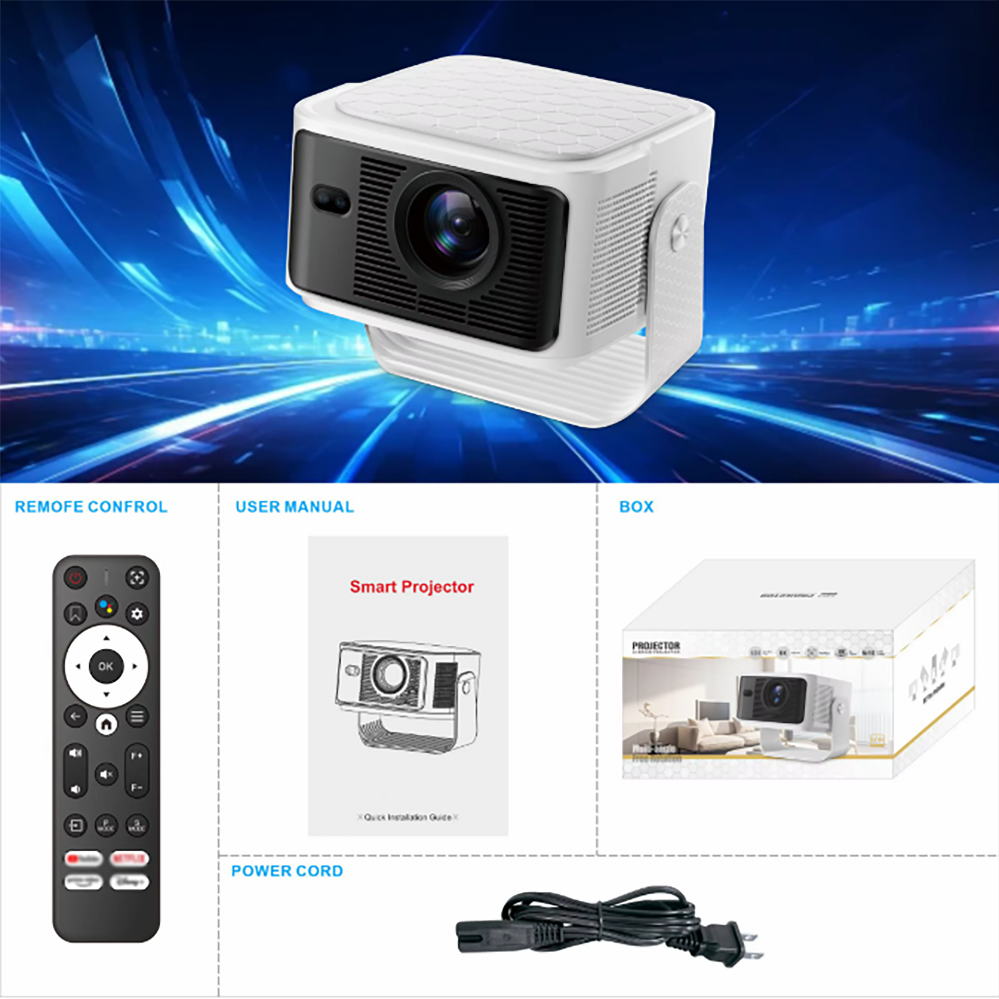 • Smart Streaming Ready with GTV OS – Access Netflix, YouTube, and other streaming apps directly on your projector without extra devices or cables. Streaming made effortless.