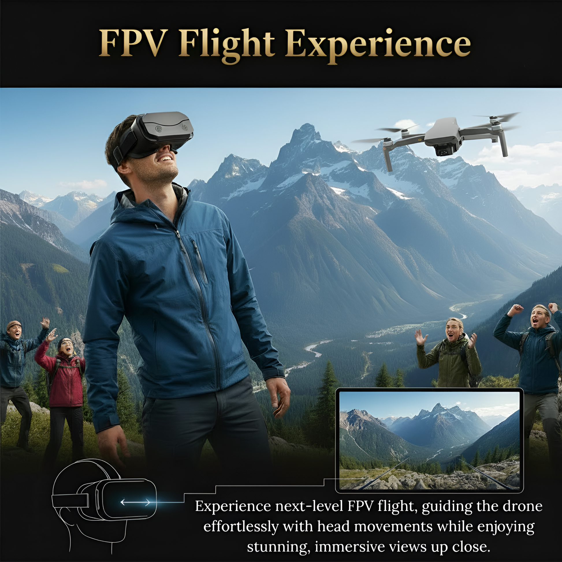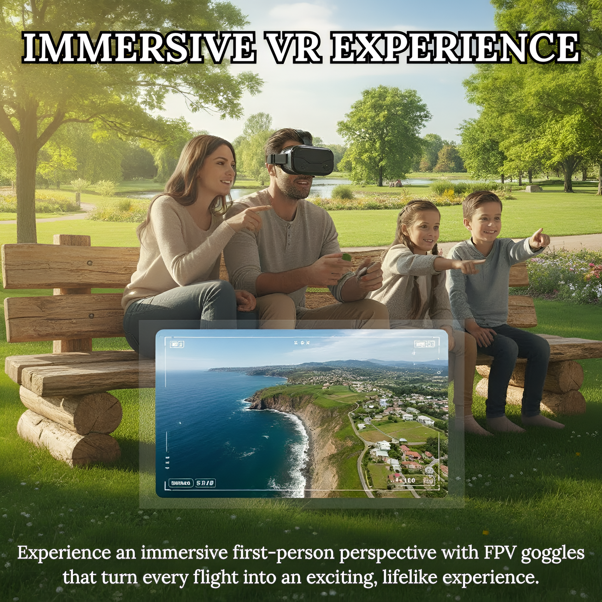 • FPV Flight Experience: Experience real FPV drone flying with head-tracking FPV glasses—move your head to control the camera and flight direction for a fully immersive first-person view.