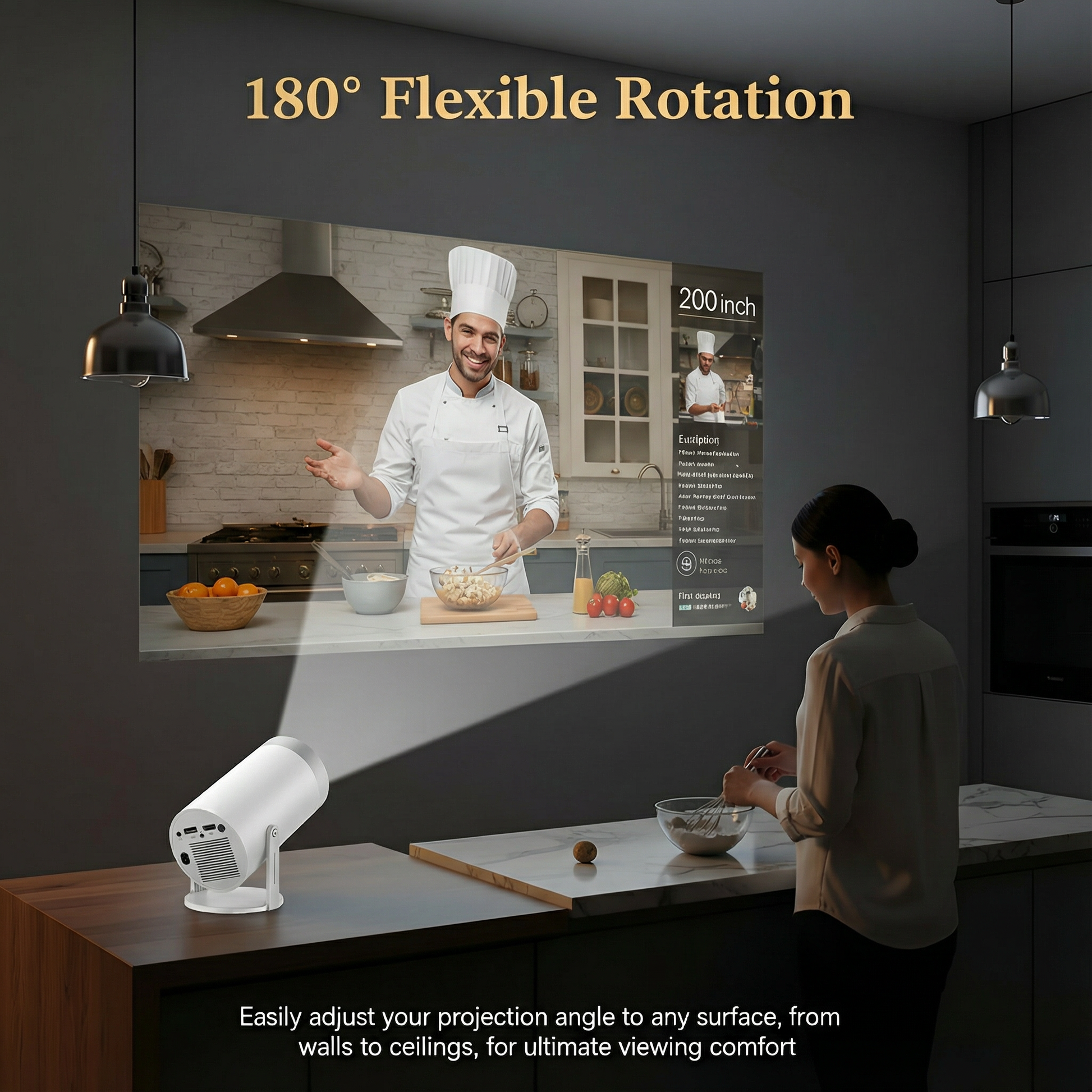 • Flexible Viewing Options: You can rotate the projector 180 degrees to show movies on walls, ceilings, or even the floor! Plus, it has an auto feature that corrects the picture to make sure it looks great no matter where you're sitting.